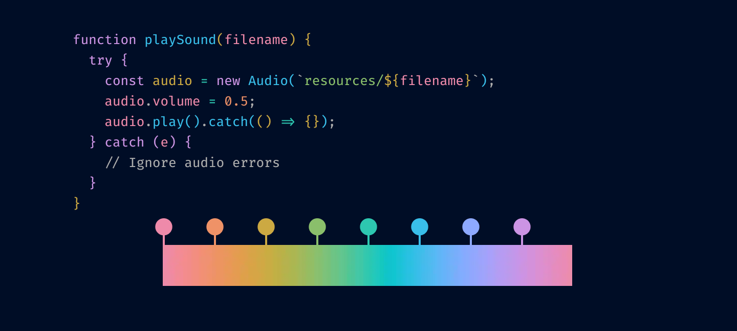 Finally, let’s rotate colors a bit. We want to respect nesting logic, so function declarations should be brighter (yellow) than variable declarations (blue).