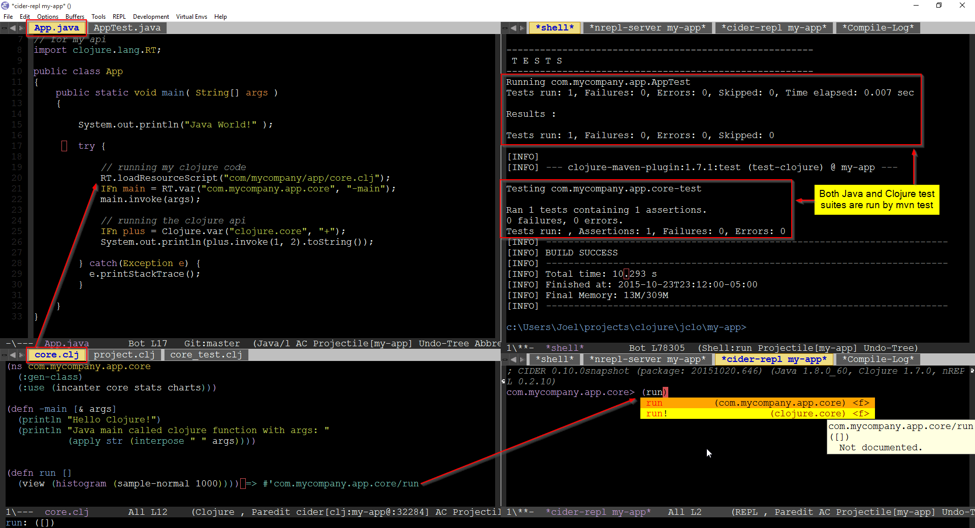 Here’s a real example from Clojure codebase that makes perfect use of two types of comments: